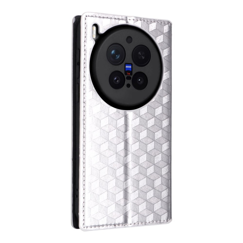 Tutustu tyylikkääseen lompakkokoteloon vivo X300 Pro 5G:lle. Se on valmistettu ensiluokkaisesta PU-nahasta, jossa on 3D-timanttikuvio, ja siinä on 2 korttipaikkaa, 1 setelilokero ja handsfree-tuki.