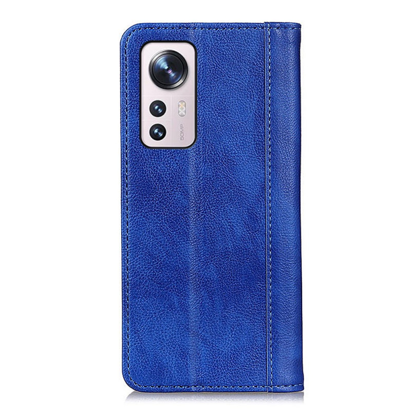 Une Flip cover en cuir fendu véritable et silicone, idéale pour protéger votre votre Xiaomi 12 Pro avec luxe.