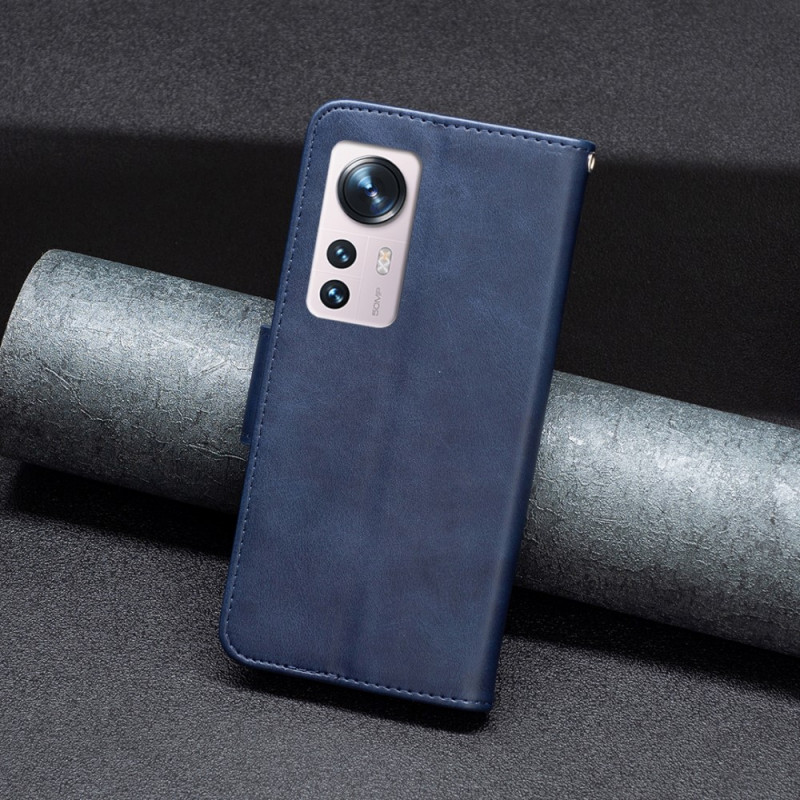 Tutustu tähän tekonahkaiseen suojakoteloon, jossa on vino lukko, joka kiinnittää Xiaomi 12 / 12X / 12S -puhelimesi ja toimii samalla lompakkona ja jalustana.