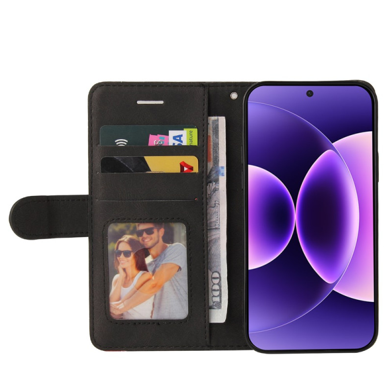 - Laadukas materiaali: Yhdistää kestävän PU-nahasta valmistetun suojakannen ja TPU-sisäkotelon, joka tarjoaa tyylikkään ulkonäön ja vankan suojan puhelimellesi.