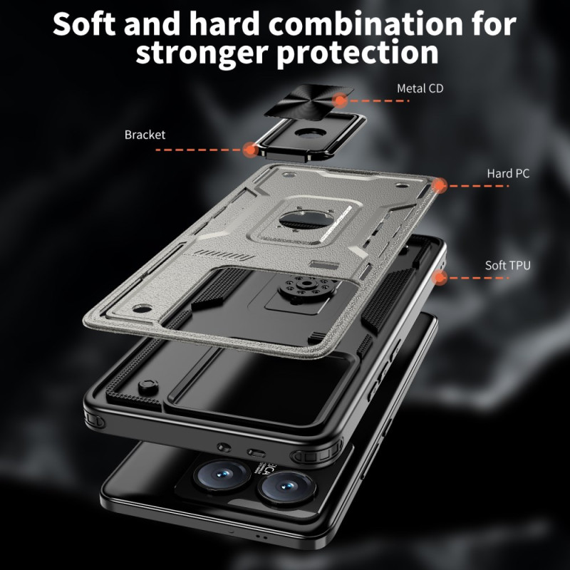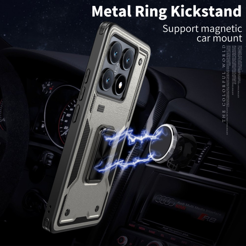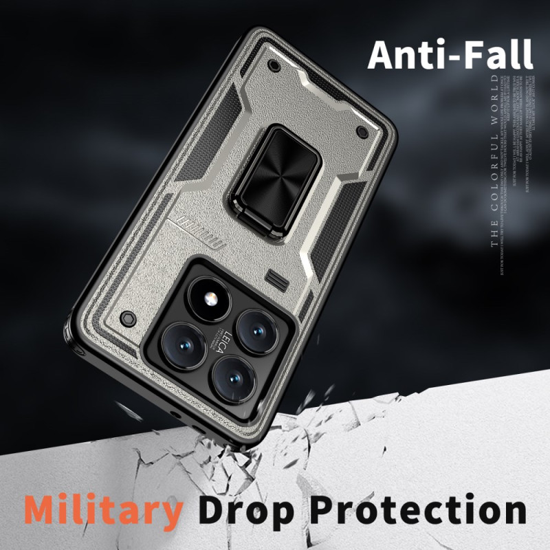 Tutustu innovatiiviseen suojakoteloon Xiaomi 14T:lle. Siinä on 360° pyörivä rengaskiinnike, se tarjoaa sotilasluokan putoamissuojan, yhdistää pehmeän TPU:n ja kovan PC:n ja on yhteensopiva magneettisten autokiinnikkeiden kanssa. Sen korotetut reunukset suojaavat näyttöä ja kameraa naarmuilta.