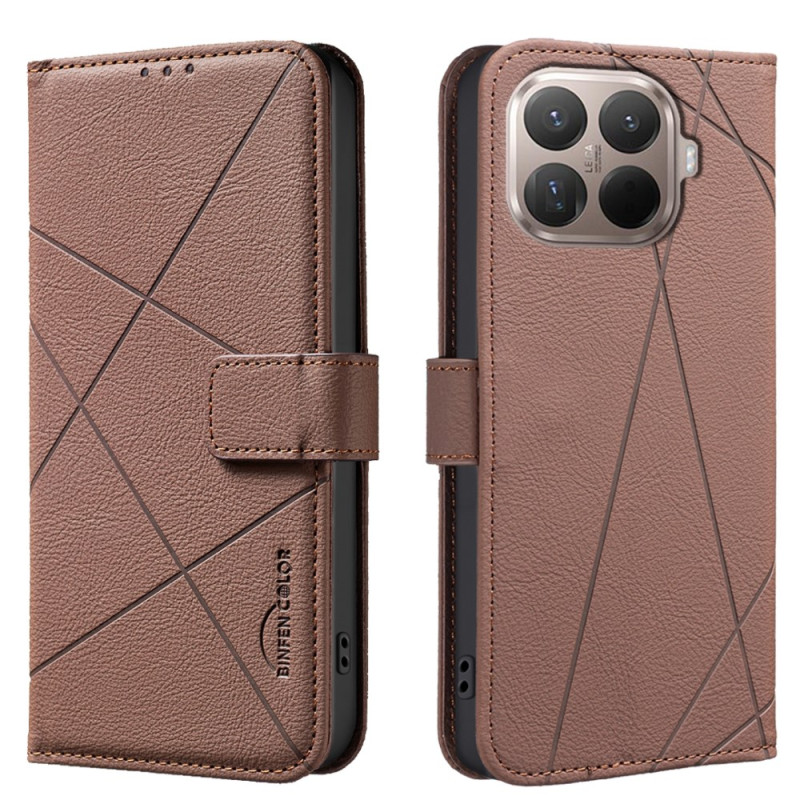 Étui portefeuille en cuir PU avec impression géométrique, combinant fonctionnalité et élégance. Doté de la technologie de blocage RFID, de trois emplacements pour cartes, d'un compartiment pour billets et d'un support réglable. Fermeture magnétique carrée et finition mate premium pour une protection et un style optimaux.