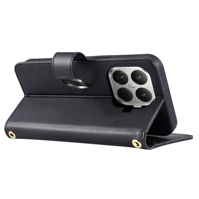 Tässä Xiaomi 15T Pro -puhelimen lompakkokotelossa yhdistyvät tyyli ja toiminnallisuus. Laadukkaasta PU-nahasta ja TPU:sta valmistettu suojakotelo tarjoaa erinomaisen naarmunkestävyyden. Sen hienostunut timanttikuvioinen muotoilu on saanut inspiraationsa haute couturesta. Pyöreä rengassuljenta lisää erottuvan kosketuksen. Kaksikerroksisessa sisätilassa on kolikkotasku ja viisi korttipaikkaa, joista yksi valokuvalle. Kotelon sivu voidaan taittaa, jolloin siitä muodostuu käytännöllinen pidike. Se tarjoaa täydellisen suojan putoamisia ja naarmuja vastaan. Toimitetaan lyhyellä käsihihnalla ja säädettävällä 145 cm:n hihnalla, jota voi käyttää kaulassa tai olkahihnana.
