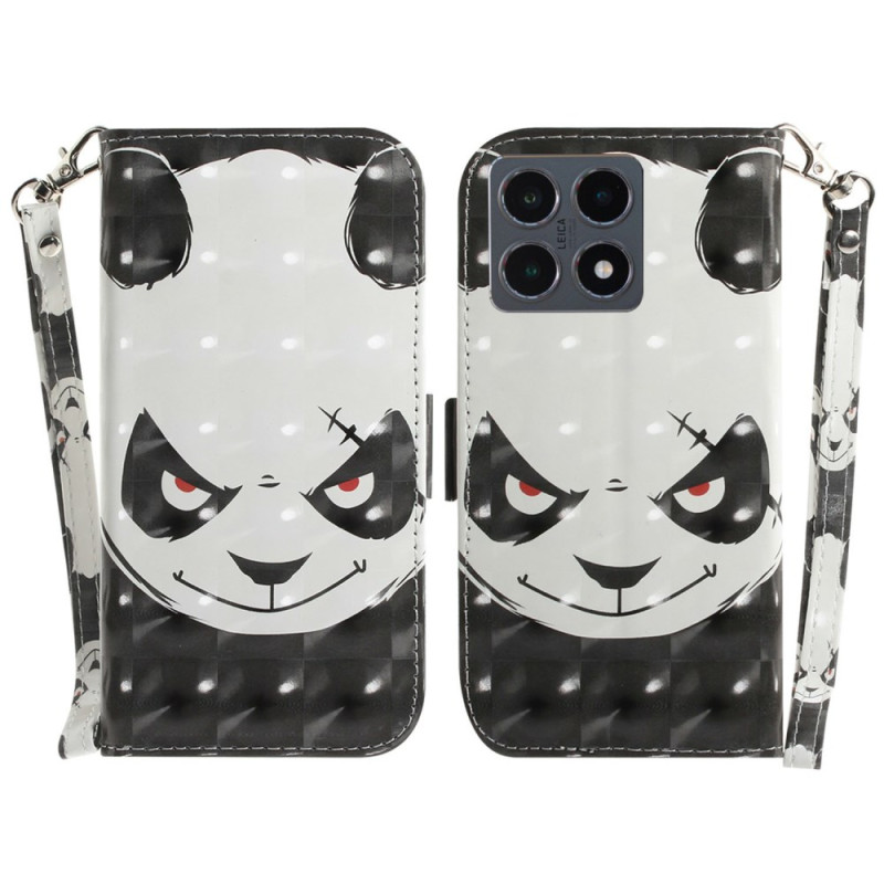 Tutustu tyylikkääseen lompakkokoteloon Xiaomi 15T:lle. Siinä yhdistyvät tyyli ja toiminnallisuus, ja siinä on vihainen pandapainatus. Korttipaikoilla, muistiinpanolokerolla ja kätevällä rannehihnalla varustettu PU-nahkakotelo tarjoaa täydellisen suojan ja helpon pääsyn puhelimeesi. Sen integroitu pidike mahdollistaa handsfree-katselun.