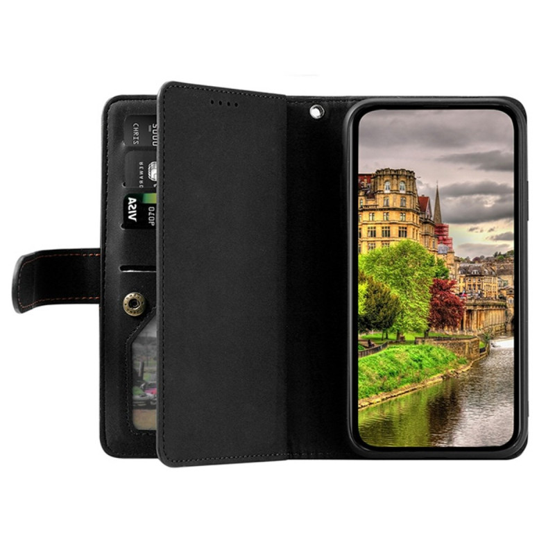 PU-nahkalompakko Xiaomi Redmi 15:lle, jossa on 9 korttipaikkaa, vetoketjukiinnitys ja käsihihna. Integroitu jalusta-toiminto handsfree-katseluun. Täydellinen suoja magneettisuljin ja TPU-sisustus. Täydellinen korttien, kolikoiden ja seteleiden turvalliseen säilyttämiseen.