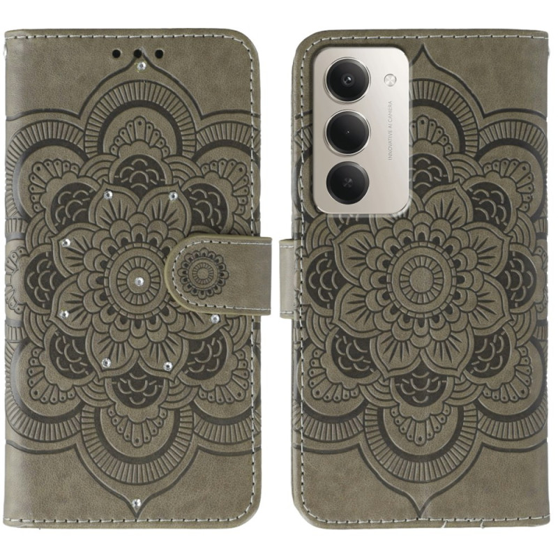 Tutustu tyylikkääseen PU-nahkakuoreemme Xiaomi Redmi 15 4G:lle. Hienostuneella mandala-aiheella ja kimaltelevilla strassikivillä koristellussa suojassa yhdistyvät tyyli ja suoja. Käytännölliset ominaisuudet, kuten integroitu jalusta, korttipaikat ja käsihihna, tekevät tästä kotelosta sekä tyylikkään että toimivan.