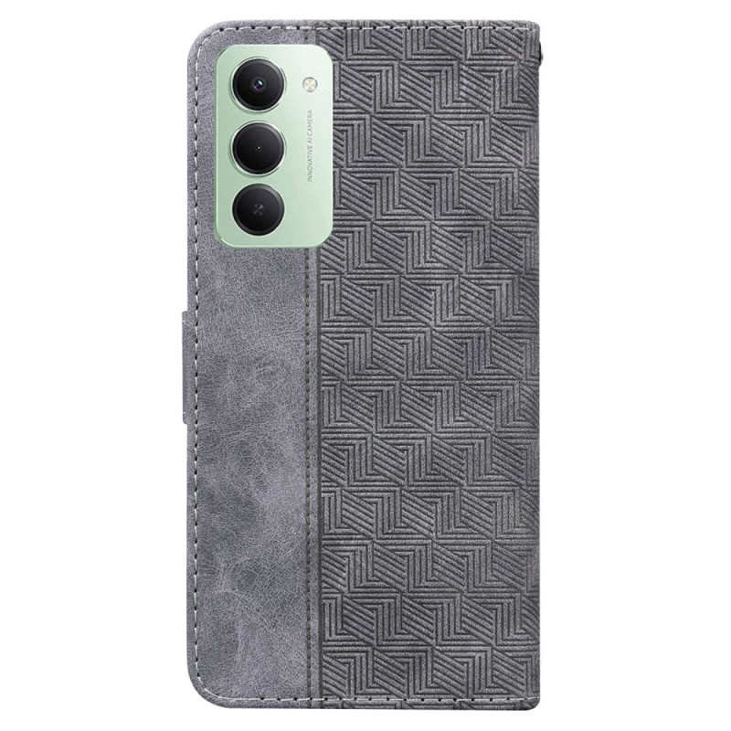 Tyylikäs PU-nahkalompakko geometrisella kuviolla Xiaomi Redmi 15 4G:lle. Tarjoaa vankan suojan, korttipaikat, muistiinpanolokeron ja jalusta-toiminnon. Sisältää rannehihnan lisäturvaa ja siirrettävyyttä varten.