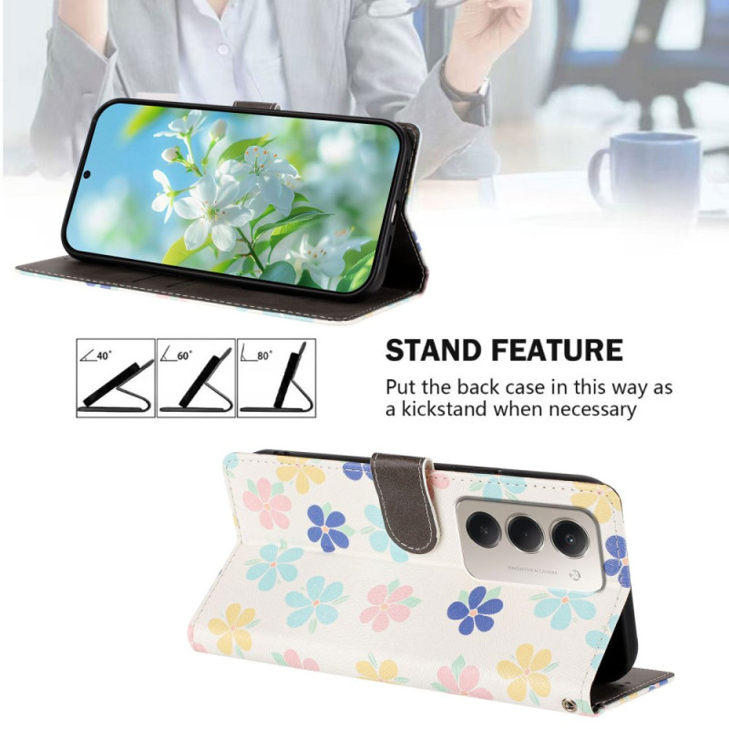 Suojaa Xiaomi Redmi 15 5G / 4G -puhelimesi tyylillä tällä PU-nahasta valmistetulla lompakkokotelolla. Värikkäällä kukkakuvioinnilla varustettu suojakotelo tarjoaa kestävän suojan putoamisia ja naarmuja vastaan. Käytännölliset ominaisuudet, kuten korttipaikat, lipputasku ja irrotettava rannehihna, yhdistävät tässä kotelossa muotoilun ja käytännöllisyyden,