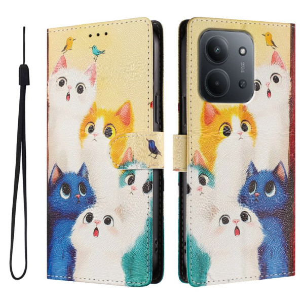 Suojaa Xiaomi Redmi 15C 5G / 5G tällä tyylikkäällä ja toimivalla lompakkokotelolla. Värikkäällä kissamotiivilla varustettu suojakotelo tarjoaa kestävän suojan, korttipaikat, jalusta-toiminnon ja irrotettavan rannehihnan. Tyylin ja käytännöllisyyden yhdistävä PU-nahkakotelo, jossa on TPU-sisäkuori, tarjoaa täydellisen suojan putoamisia ja naarmuja vastaan.