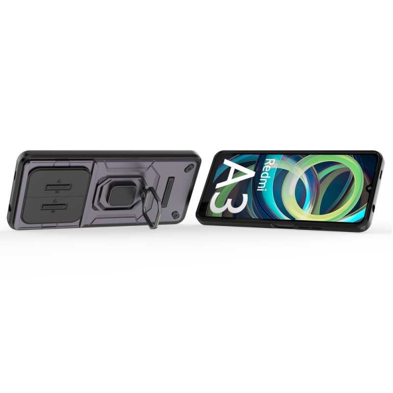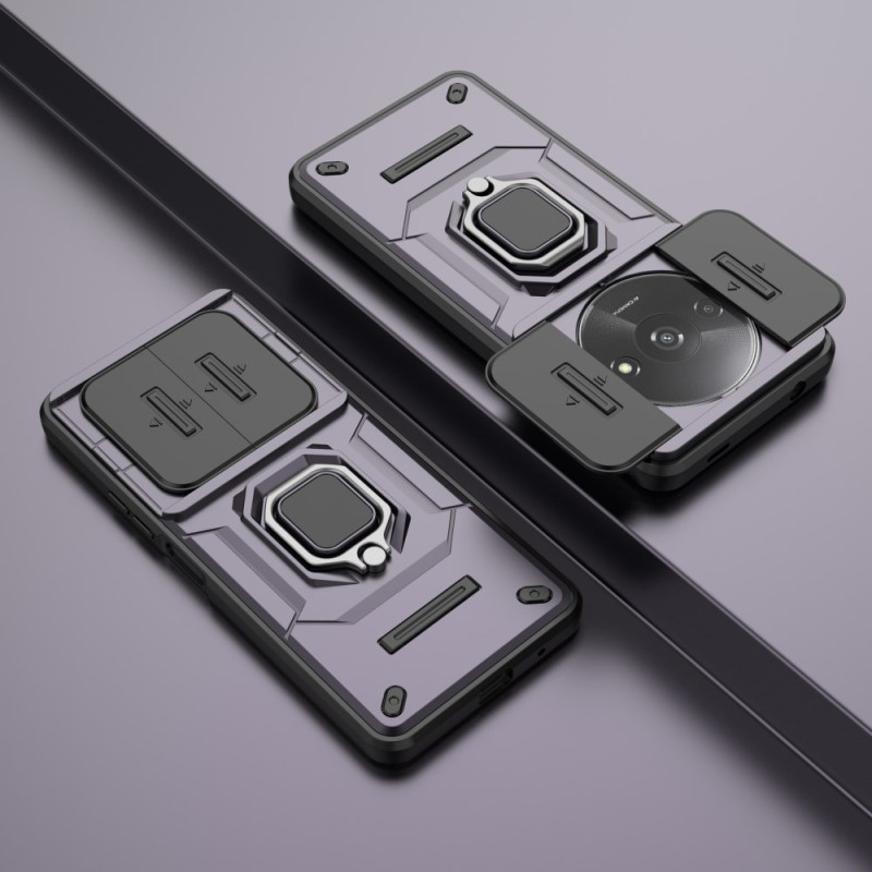 Tässä Xiaomi Redmi A3 / Poco C61 -puhelimen kotelossa on liukuva kamerasuoja ja rengastuki.