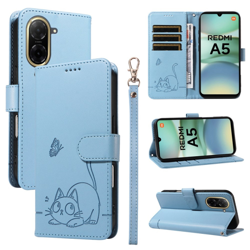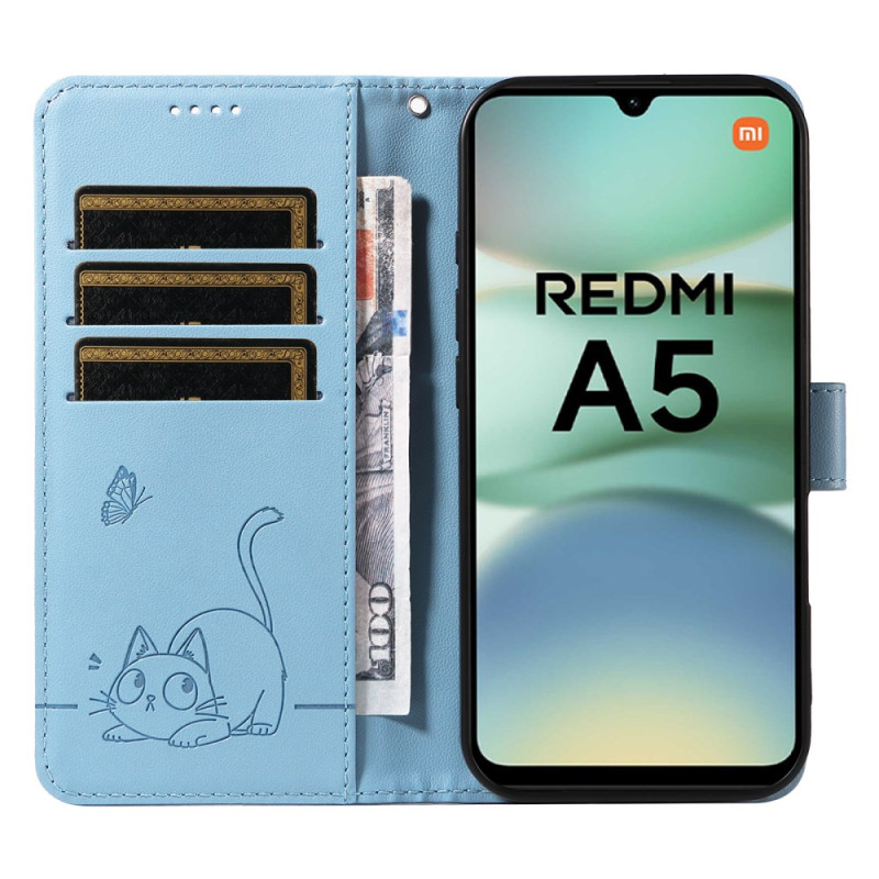 Xiaomi Redmi A5 onnekas kissa motiivi. Sisältää kolme korttipaikkaa, rahataskun ja turvallisen magneettisulkimen.
