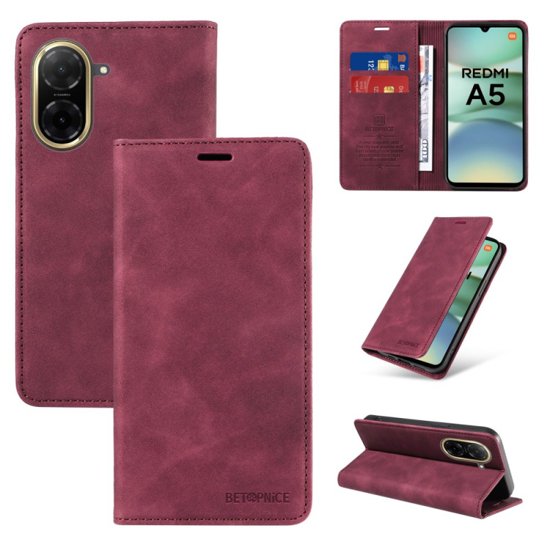 Tutustu nahkaiseen lompakkokoteloon Xiaomi Redmi A5:lle. Se tarjoaa täydellisen suojan, ja siinä on magneettisuljenta, RFID-sulku, korttipaikat ja integroitu jalusta.