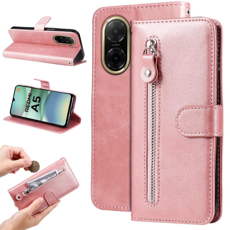 vetoketjullinen tasku Xiaomi Redmi A5 . Tarjoaa täyden suojan TPU-kuorella, kortti- ja kolikkolokerot, magneettisuljenta ja jalusta-toiminto.