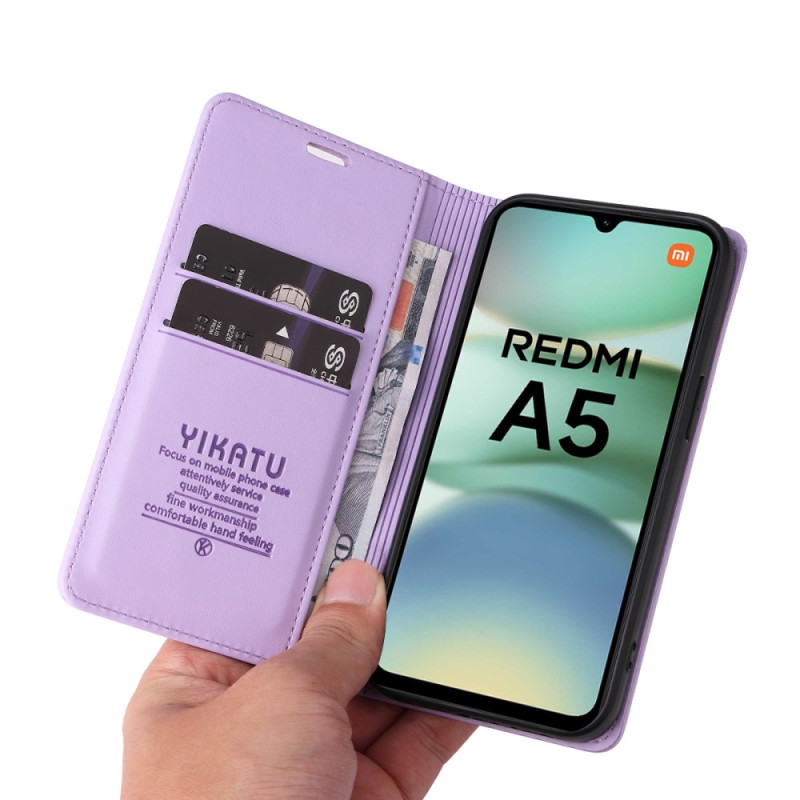 Tutustu suojaavaan PU-nahkakoteloon Xiaomi Redmi A5:lle. Tässä kotelossa on magneettisuljenta, kaksi korttipaikkaa ja lipputasku, ja siinä yhdistyvät toiminnallisuus ja tyyli.