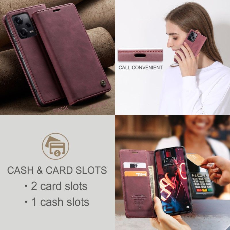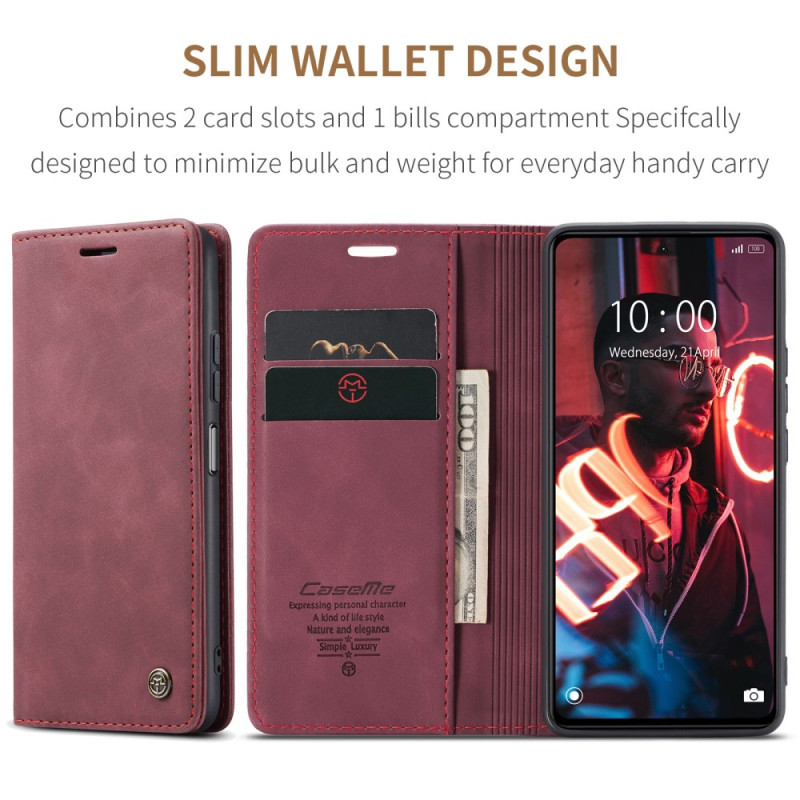 Tämä CASEME:n suunnittelema fläppisuojus suojaa täydellisesti Xiaomi Redmi Note 12 5G/Poco X5 5G -puhelinta ja toimii samalla lompakkona.