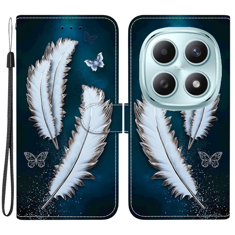 Suojaa Xiaomi Redmi Note 15 5G -puhelimesi tyylikkäästi tällä läppäsuojakuorella , jossa on valkoinen perhonsulkakuvio. Siinä on jalusta-toiminto, korttipaikat, turvallinen magneettisuljenta ja irrotettava kantolenkki kätevää kantamista varten.