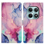 Tyylikäs lompakkokotelo vaaleanpunaisella ja vihreällä marmorikuviolla Xiaomi Redmi Note 15 5G:lle. All-in-one-muotoilu, jossa 2 korttipaikkaa, 1 valokuvatasku ja sivulokero. Integroitu jalusta handsfree-katseluun ja irrotettava käsihihna mukana.