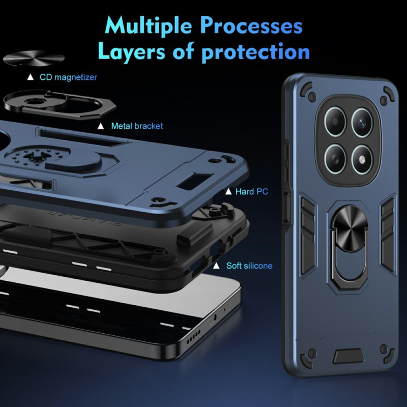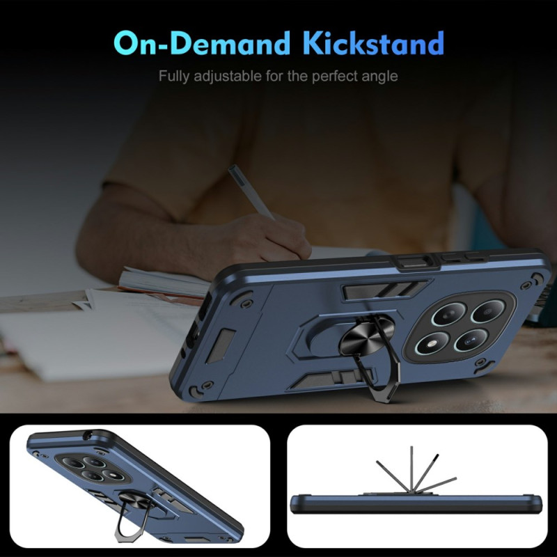 Suojaa Xiaomi Redmi Note 15 5G -puhelimesi tällä PC + TPU -hybridikotelolla, jossa on pyörivä tukirengas. Pudotuksenestomuotoilu korotetuilla reunoilla, jotka suojaavat näyttöä ja kameraa täydellisesti. Magneettinen autokiinnike yhteensopiva.