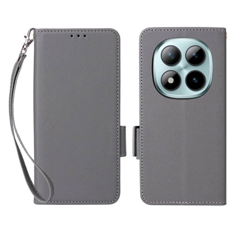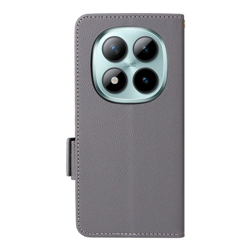 Étui portefeuille élégant en cuir PU texture litchi pour Xiaomi Redmi Note 15 Pro 4G. Comprend des emplacements pour cartes, support de visualisation intégré et dragonne pratique. Protection complète avec fermeture magnétique sécurisée.