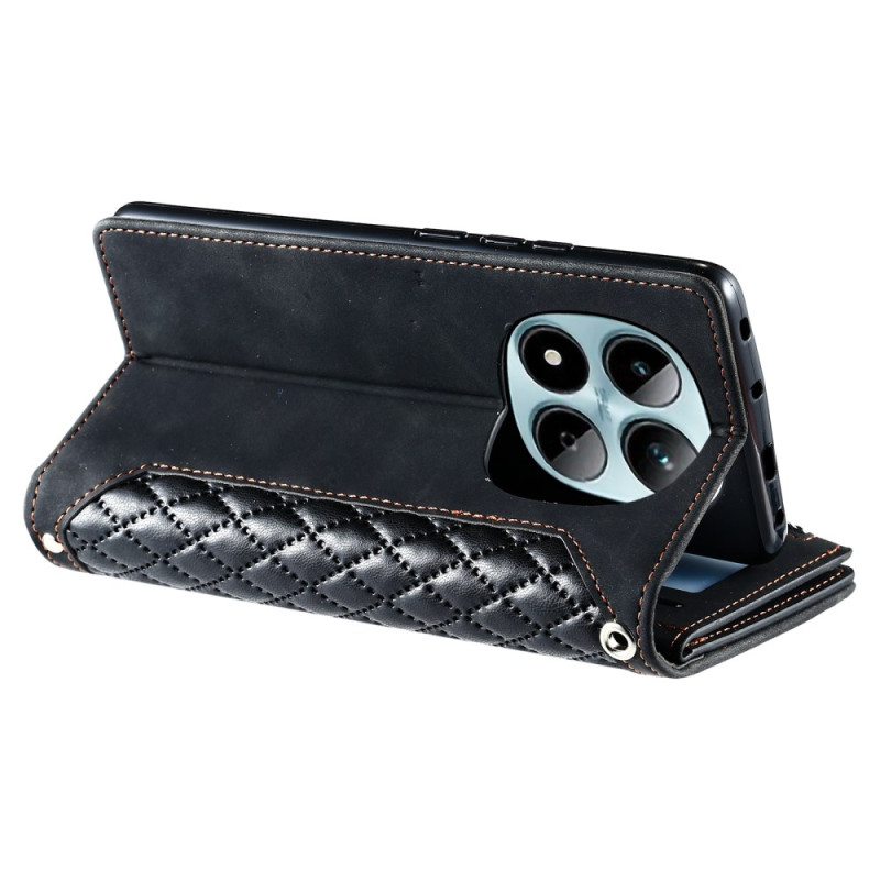Tyylikäs lompakkokotelo tikatulla timanttikuviolla Xiaomi Redmi Note 15 Pro 4G:lle. Yhdistää tyylin ja toiminnallisuuden useilla korttipaikoilla, handsfree-tuella ja turvallisella magneettisuljennalla.