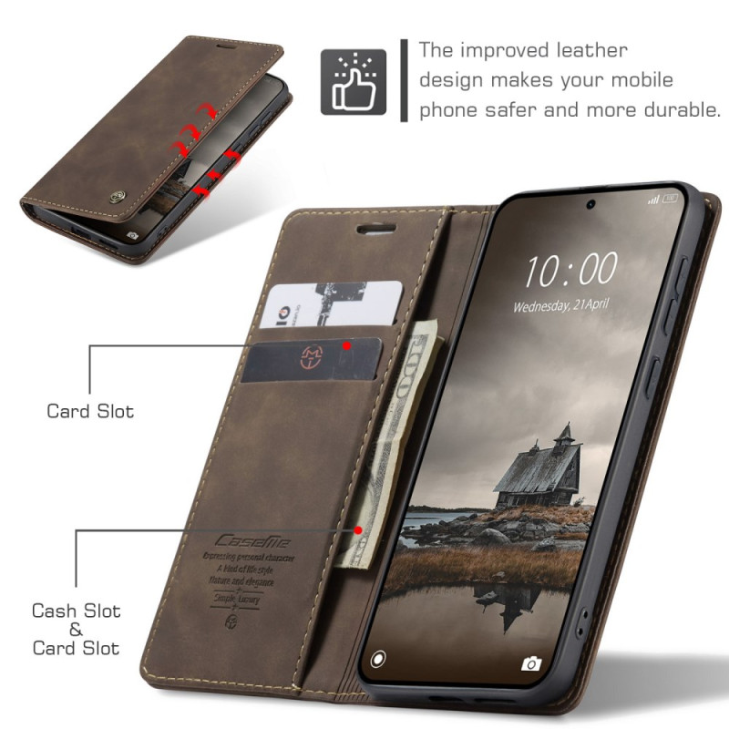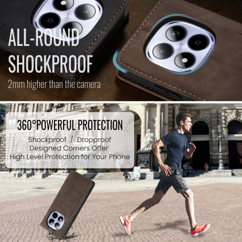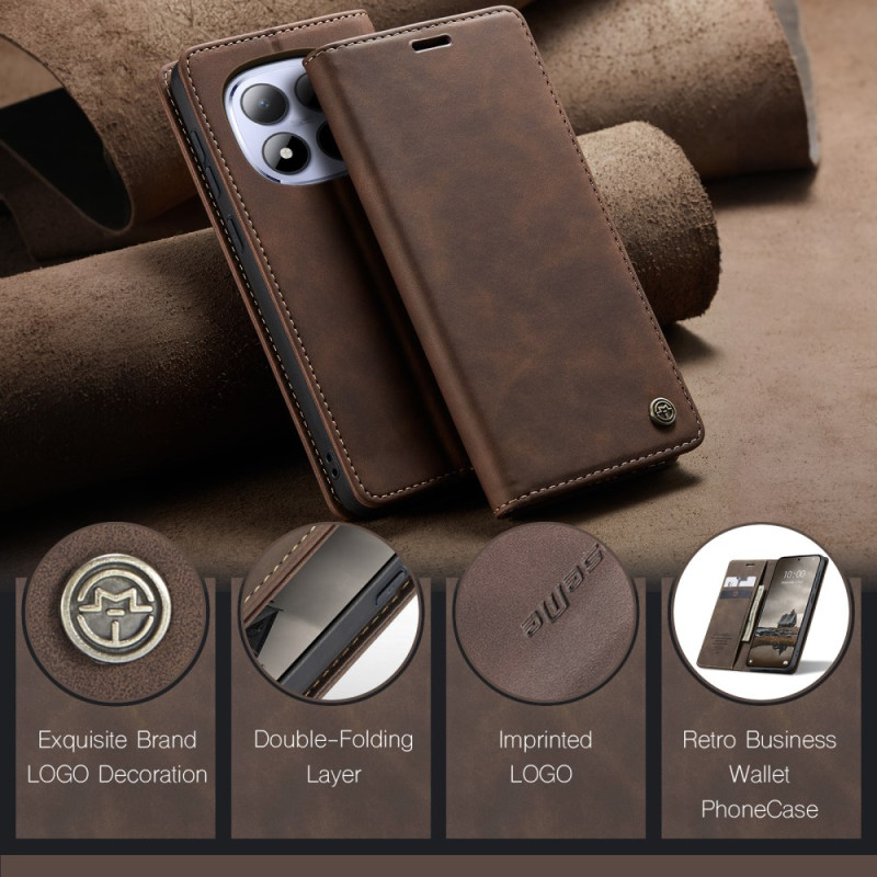 Tutustu CASEME 013 lompakkokoteloon Xiaomi Redmi Note 15 Pro 4G:lle. Tyylikäs retromuotoilu, jossa on lokerot korteille ja rahoille, säädettävä katseluteline ja turvallinen magneettisuljenta. Täydellinen suoja puhelimellesi.
