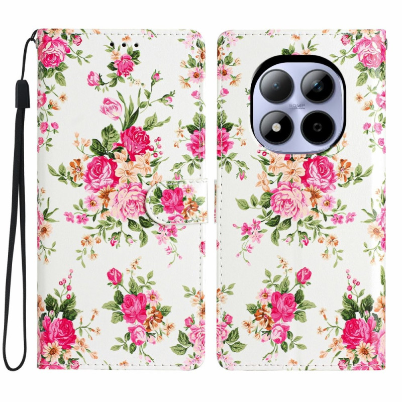 Tutustu tähän tyylikkääseen lompakkokoteloon, jossa on punainen kukka-aihe Xiaomi Redmi Note 15 Pro 5G -puhelimelle. Siinä on 3 korttipaikkaa, rahatasku ja käytännöllinen rannehihna, ja siinä yhdistyvät tyyli ja toiminnallisuus.