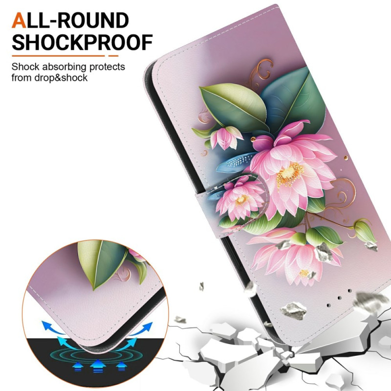 Tyylikäs lompakkokotelo Xiaomi Redmi Note 15 Pro 5G:lle hienostuneella lootuspainatuksella. Korttipaikoilla, integroidulla pidikkeellä ja turvallisella magneettisulkimella. Optimaalinen iskunkestävyys naarmuuntumattomalla pinnalla.