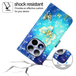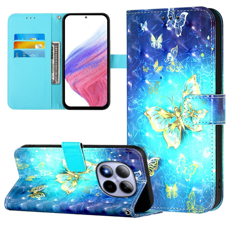 Suojaa Xiaomi Redmi Note 15 Pro 5G -puhelimesi tyylikkäästi tällä lompakkokotelolla, jossa on kultainen perhoskuvio. Monikäyttöinen muotoilu, jossa on 3 korttipaikkaa, 1 käteistasku ja säädettävä jalusta kädet vapaana.