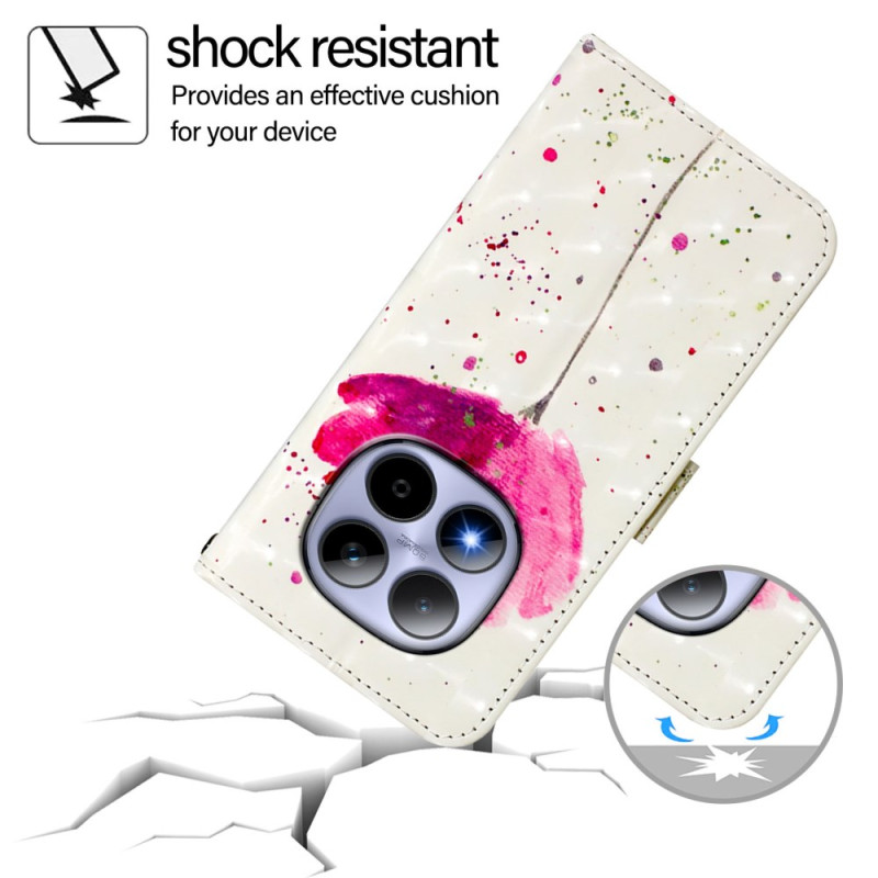 Suojaa Xiaomi Redmi Note 15 Pro 5G -puhelimesi tyylikkäästi tällä monikäyttöisellä lompakkokotelolla, jossa on kaunis kukka-aihe.