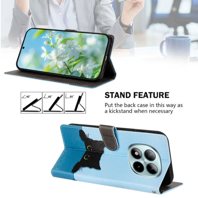 Suojaa Xiaomi Redmi Note 15 Pro Plus 5G -puhelimesi tyylikkäästi tällä tyylikkäällä lompakkokotelolla. Sen musta kissakuvioinen muotoilu tuo ainutlaatuisen kosketuksen, ja sen vankka rakenne takaa täydellisen suojan kolhuilta ja naarmuilta.