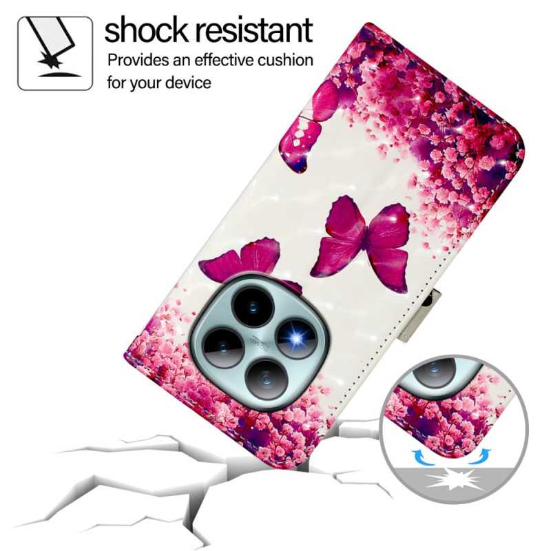 Suojaa Xiaomi Redmi Note 15 Pro Plus 5G -puhelimesi tyylikkäästi tällä lompakkokotelolla, jossa on lumoava perhosten ja ruusujen muotoilu.