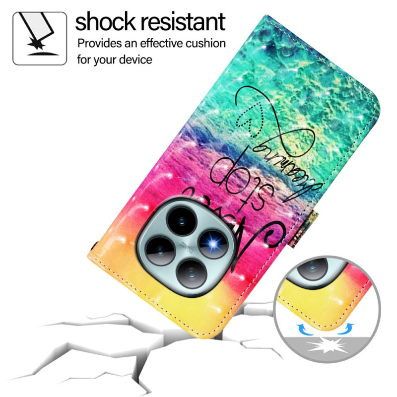 Suojaa Xiaomi Redmi Note 15 Pro Plus 5G -puhelimesi tyylikkäästi tällä monikäyttöisellä lompakkokotelolla. Inspiroiva "Never Stop Dreaming" -muotoilu, 3 korttipaikkaa, säädettävä handsfree-pidike ja turvallinen magneettisuljenta.