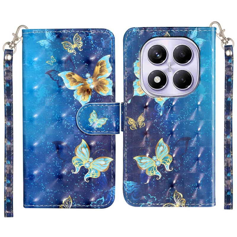 Protégez votre Xiaomi Redmi Note 15 Pro Plus 5G / Poco M8 Pro 5G avec élégance grâce à cet étui portefeuille au design enchanteur de papillons bleu doré en impression 3D. Doté de multiples emplacements pour cartes, d'une fonction support ajustable et d'une fermeture magnétique sécurisée.